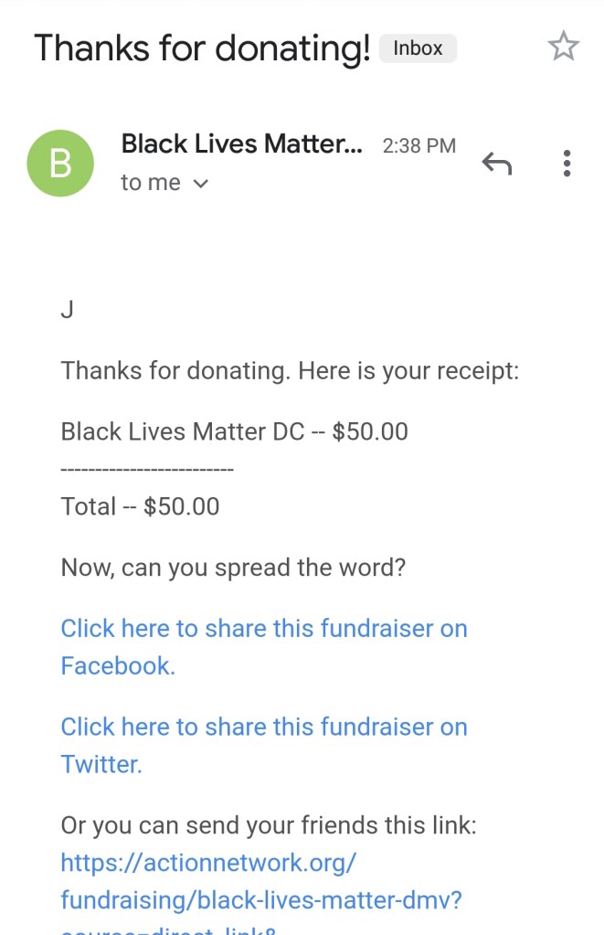 On July 2nd, I was able to send $50 to Black Lives Matter DC. Why the 2nd? Two reasons: