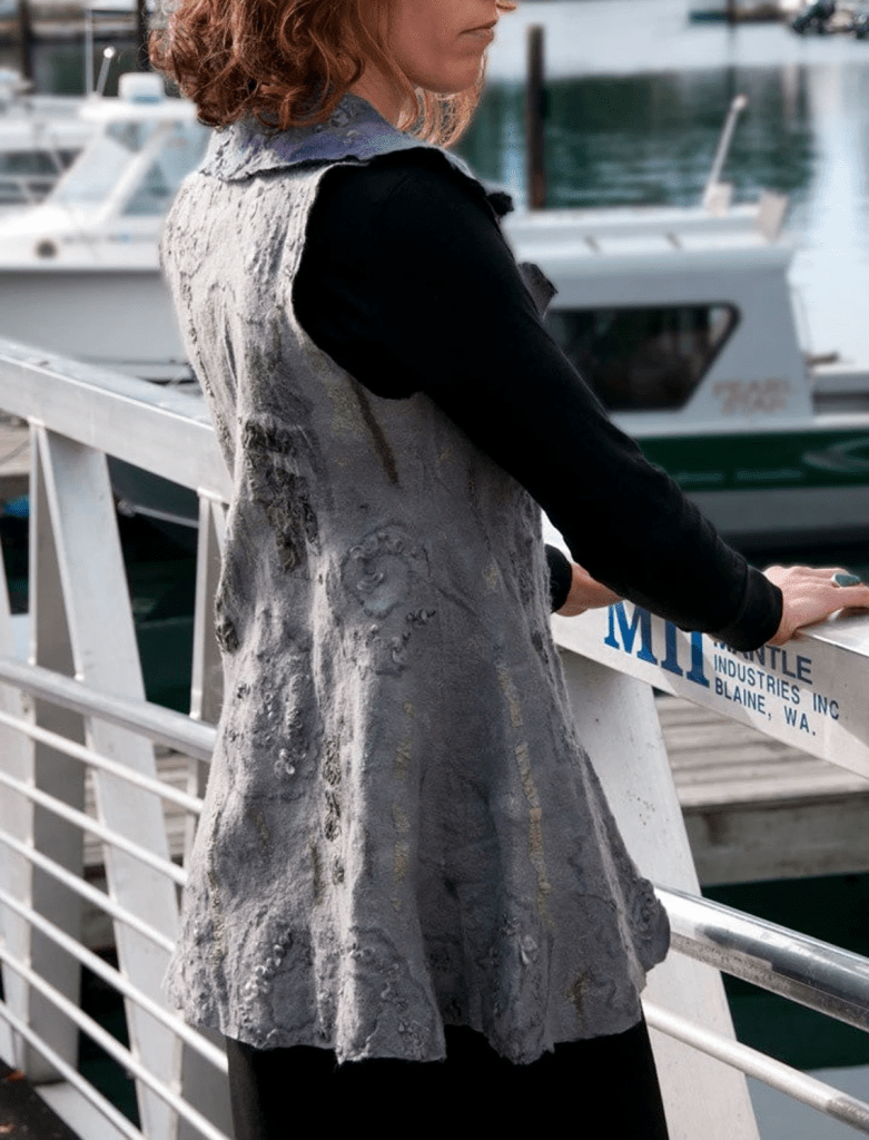 Nuno felting is a ton of fun. Using this kit, I started with a length of silk and some wisps of wool, and, after rolling a soapy pool noodle around my kitchen for a bit, have a gorgeous scarf in my favorite colors. It’s a project I definitely want to tackle again — I’d love to use this technique for arm warmers, vests, shawls, you name it. Next, I’d like to give this Nuno felt vest kit a try.