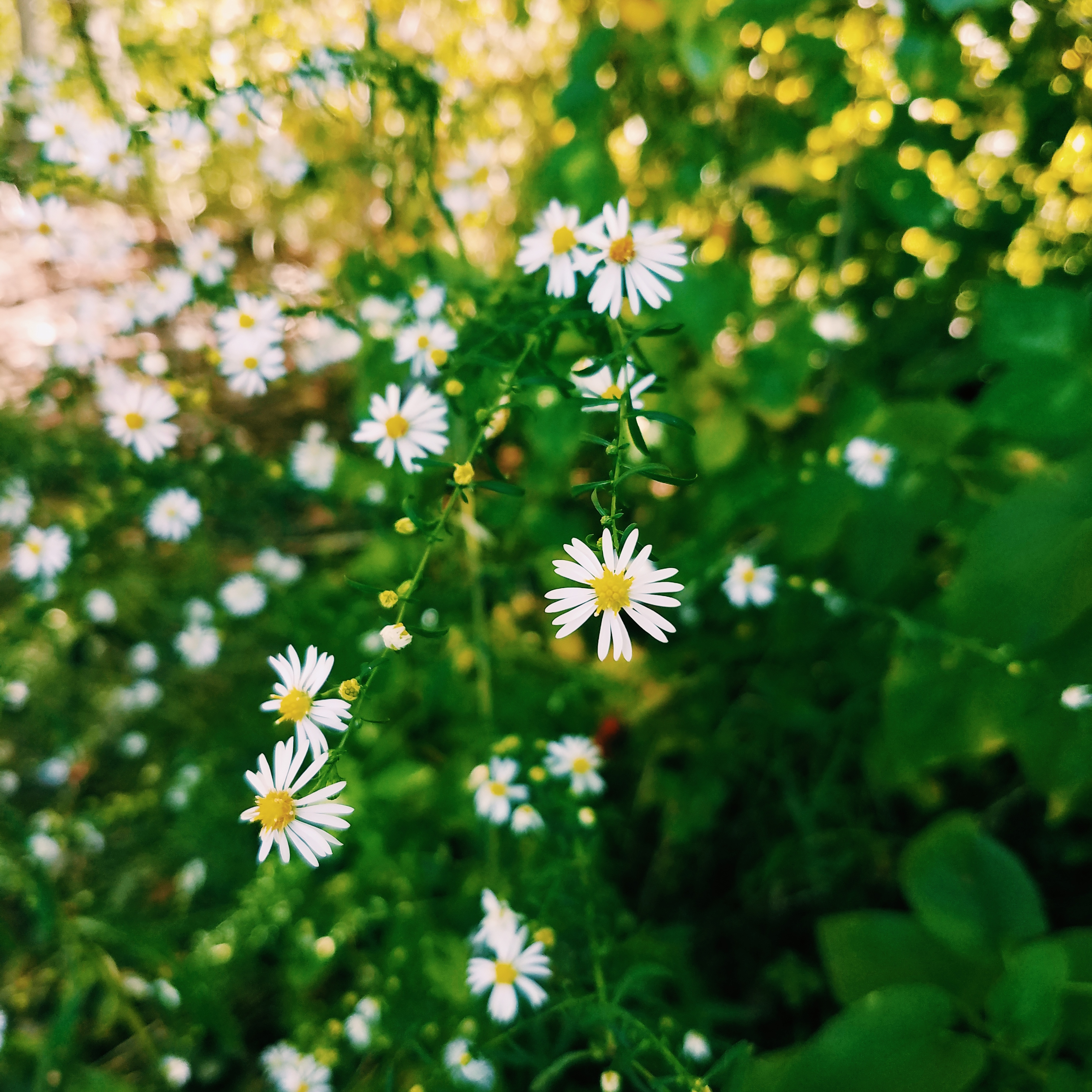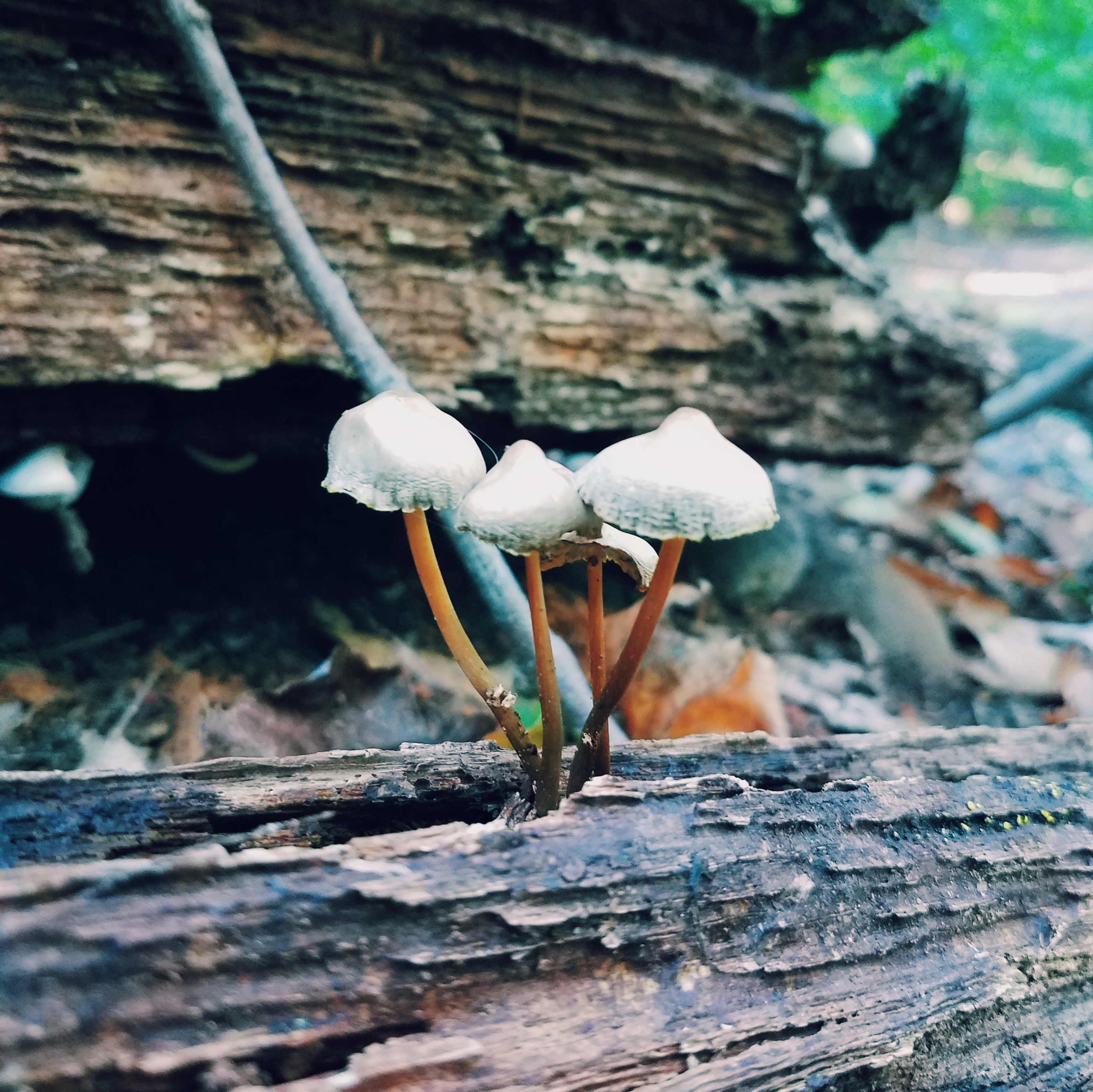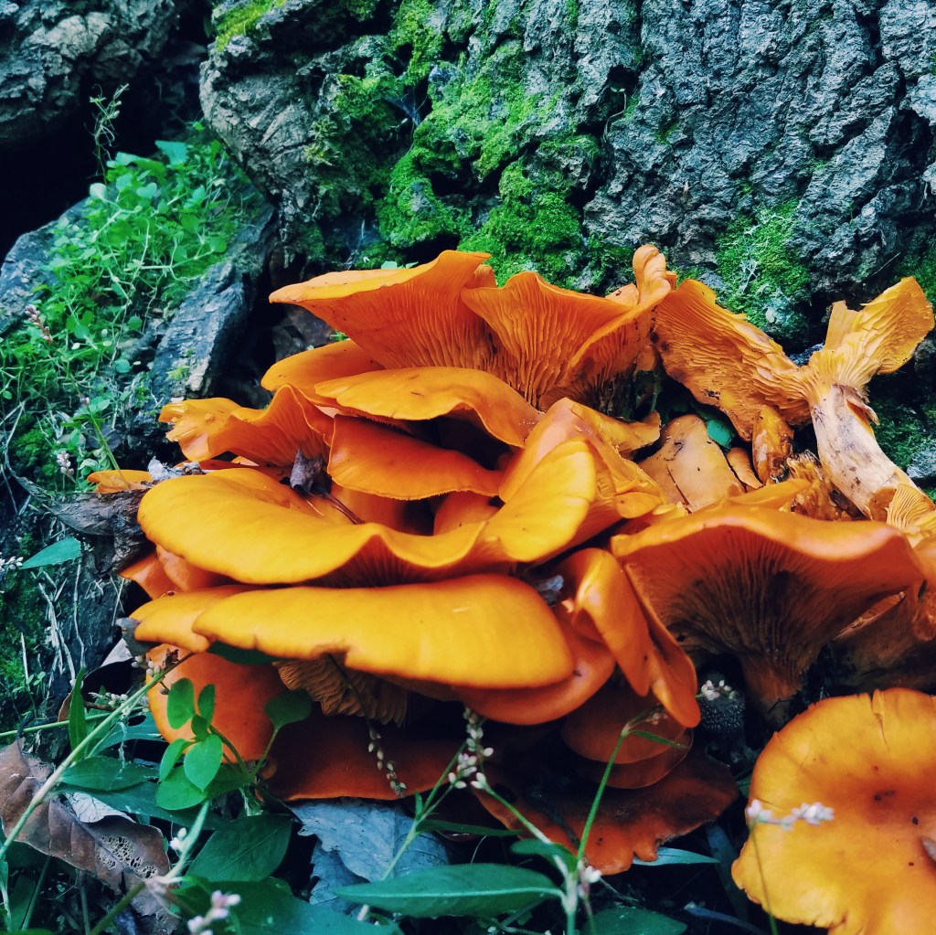 Despite the lack of rain, there were also loads of mushrooms. Striped turkey tails, unfolding like flower petals. Round puffballs like dollops of meringue. Clusters of other fungi, nestled amid fallen leaves, ferns, and small groundcover plants.